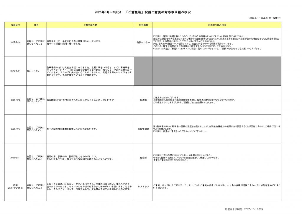 ご意見箱への回答(2025年8~9月分)