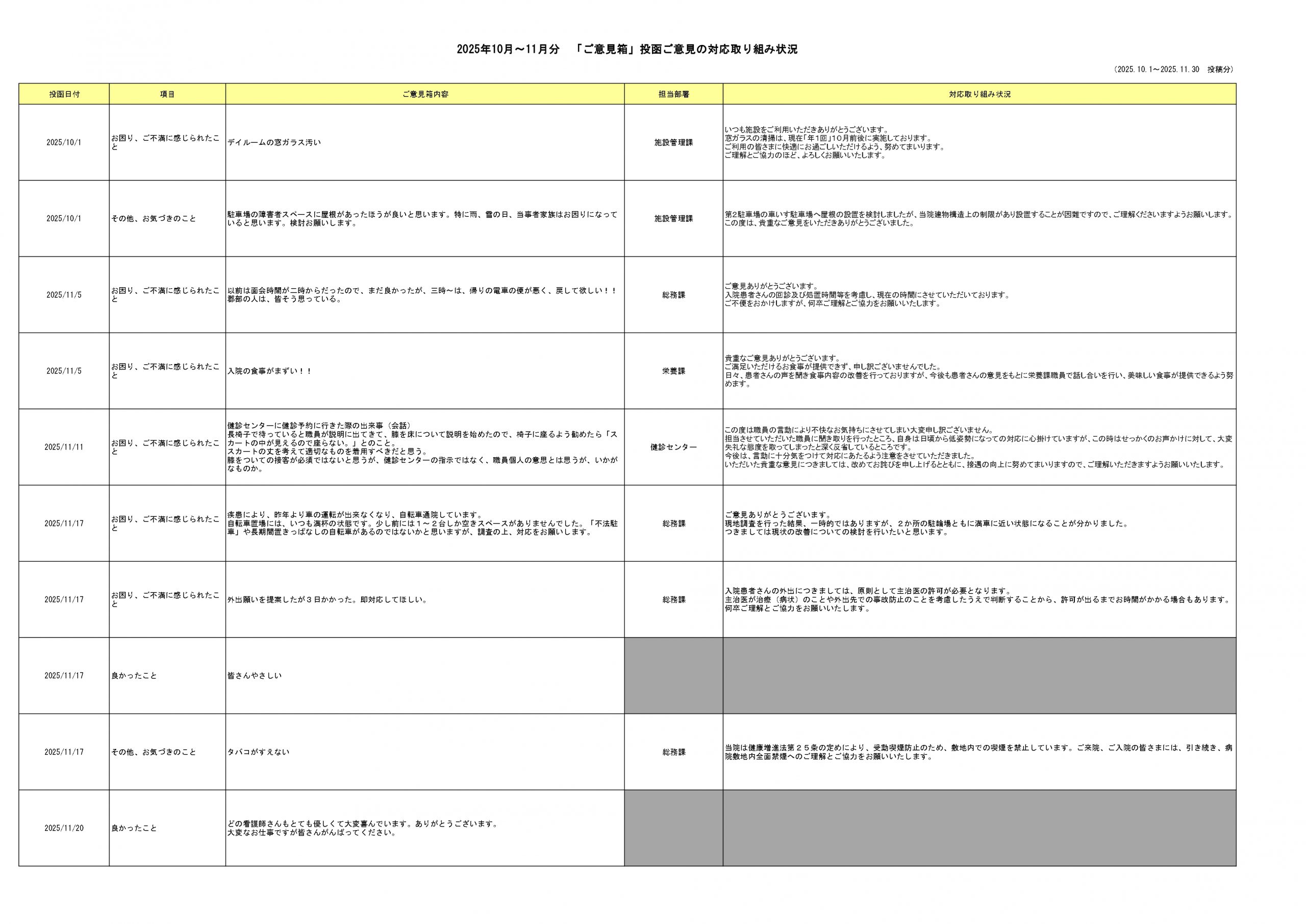 ご意見箱への回答(2025年10~11月分)